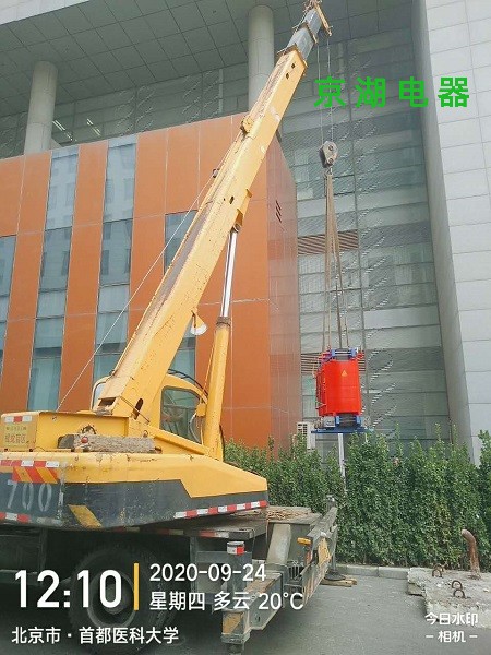 首都醫(yī)科大學是北京市人民政府、國家衛(wèi)生健康委員會、教育部共建院校,是北京市重點高等院校,2020年9月24日,學校安裝更換北京市京湖電器設備廠生產(chǎn)制造干式變壓器SCB10-2000/10一臺,目前變壓器油運行狀況良好,很好的滿足了學校日常用電需求,圖為安裝現(xiàn)場: