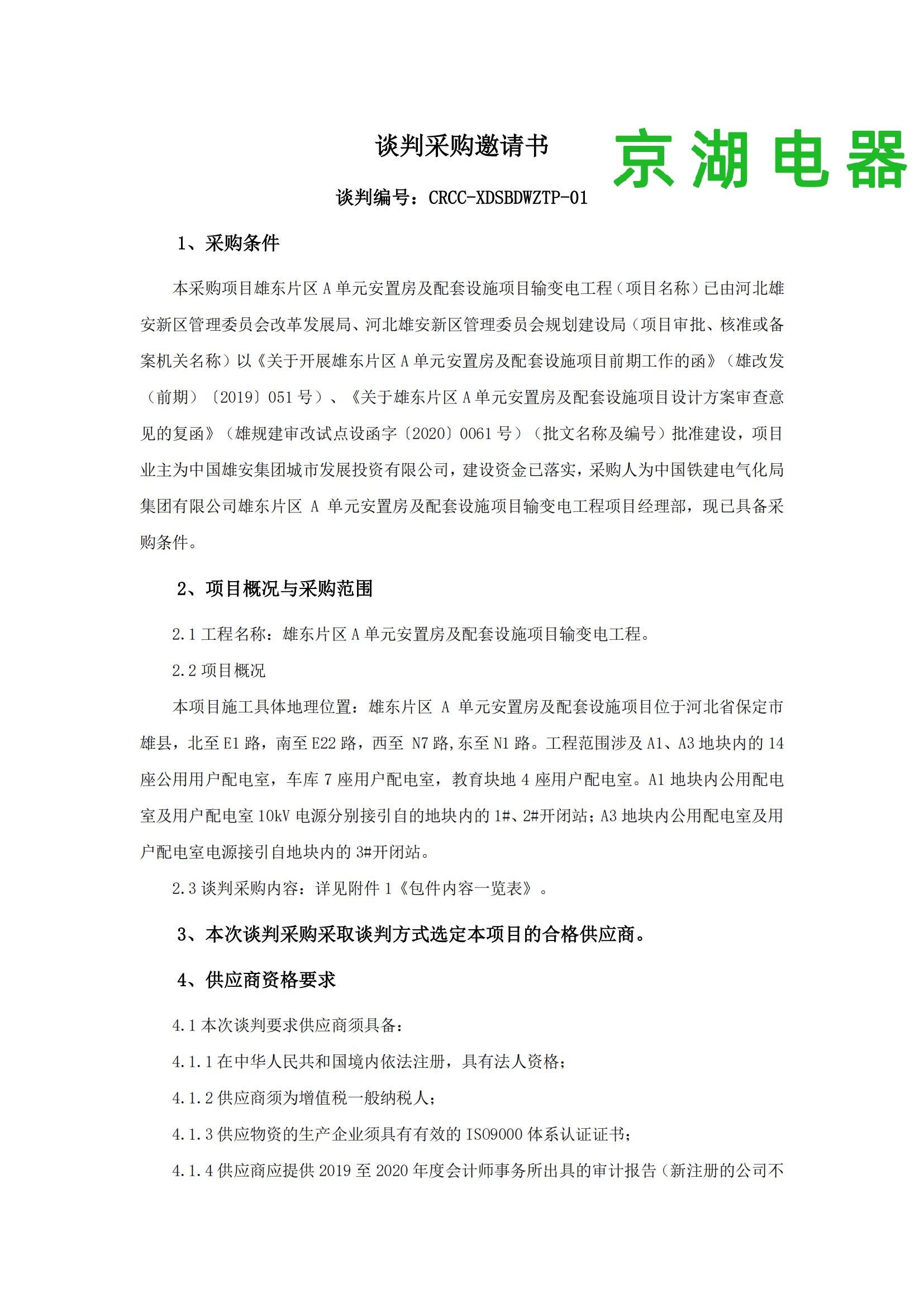 中國(guó)鐵建電氣化局集團(tuán)有限公司 談判采購(gòu)邀請(qǐng)書(shū)