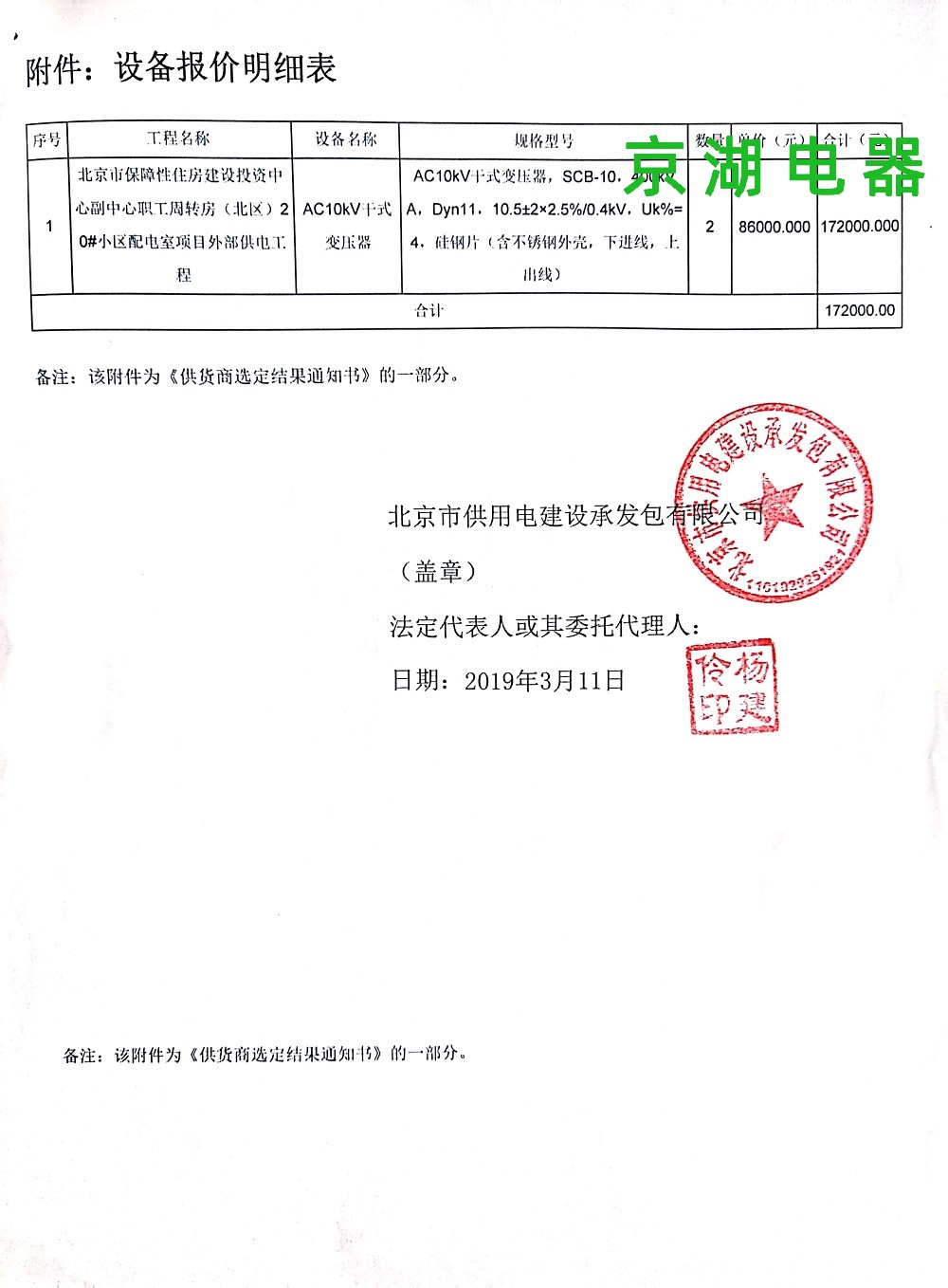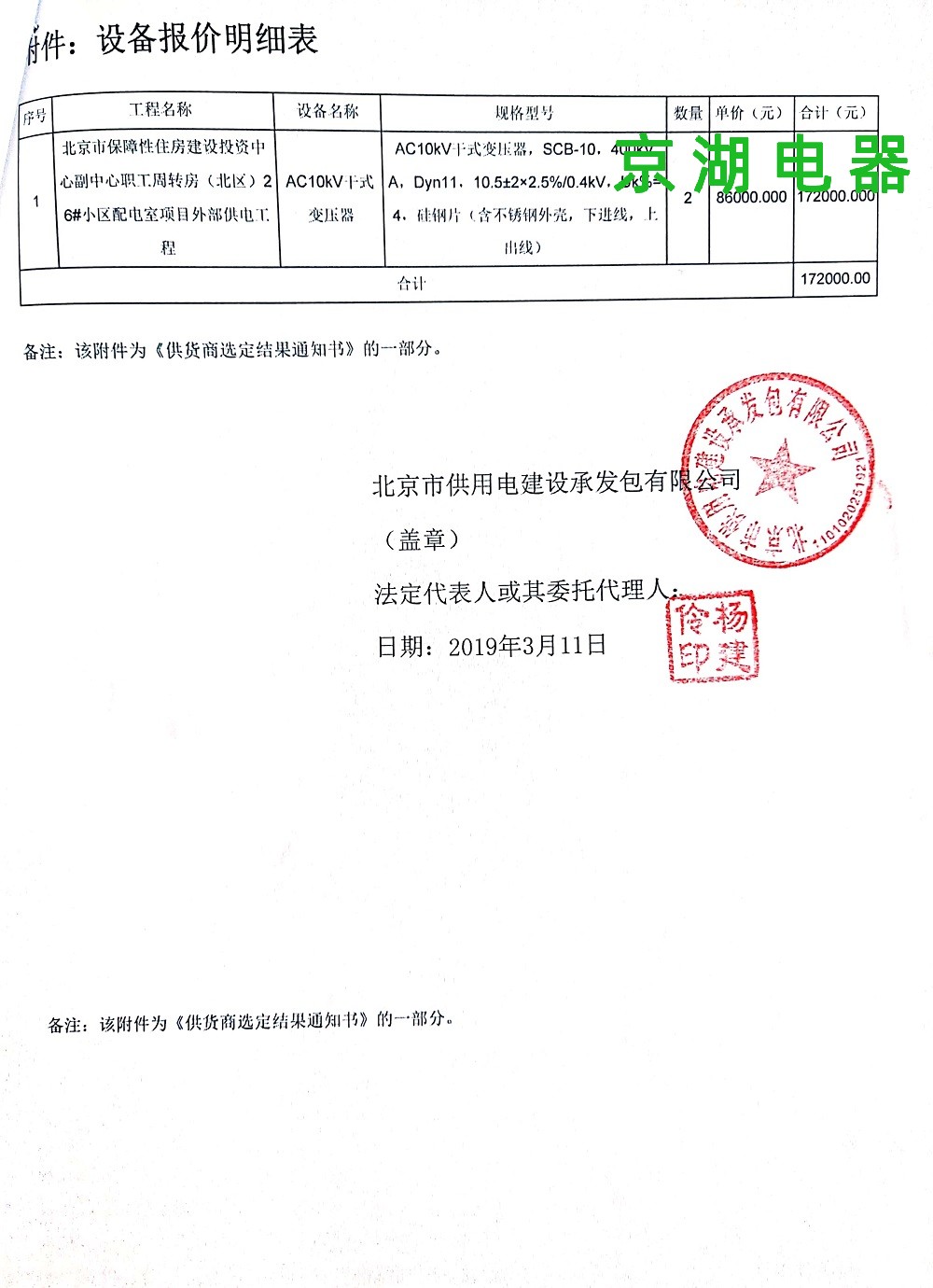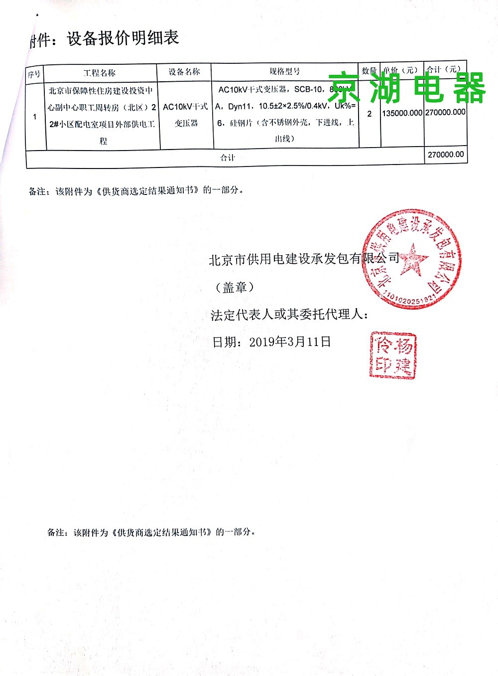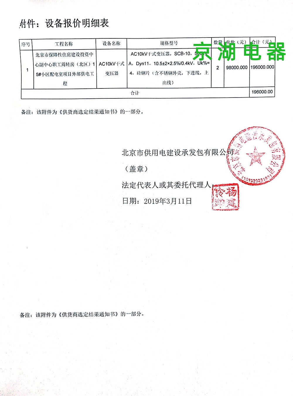 北京市保障性住房建設(shè)投資中心 供應(yīng)商選定結(jié)果通知書 2019年3月11日