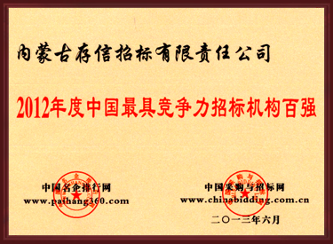 2012年度中國最具競爭力招標(biāo)機構(gòu)百強