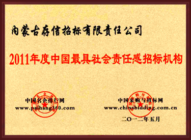 2011年度中國最具社會責(zé)任感招標(biāo)機構(gòu)