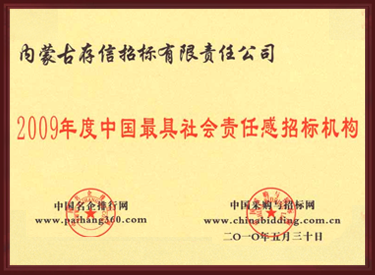 2009年度中國最具社會責(zé)任感招標(biāo)機構(gòu)