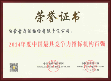 2015年度內(nèi)蒙古自治區(qū)招標代理機構(gòu)首選品牌