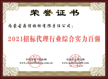 2021內(nèi)蒙古自治區(qū)招標(biāo)代理公司前三強(qiáng)