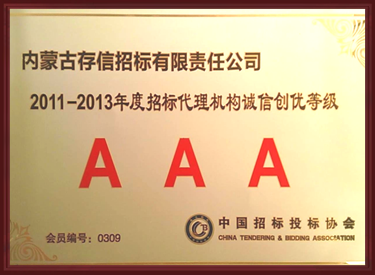 2011-2013年度招標(biāo)代理機(jī)構(gòu)誠信創(chuàng)優(yōu)等級(jí)AAA