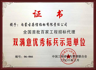 全國首批百家工程招標(biāo)代理雙滿意優(yōu)秀標(biāo)兵示范單位