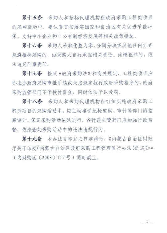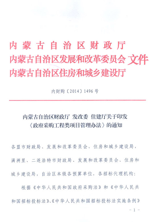 內(nèi)財購[2014]1496號《政府采購工程類項目管理辦法》